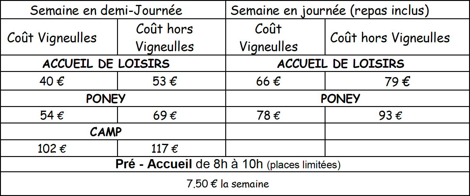 Les enfants sont pris en charge à l’accueil de loisirs aux horaires indiqués ci dessus et seront emmenés au centre équestre de Buxerulles pour apprendre les techniques de soins aux animaux et suivre des cours en manège. Mais nous sollicitons les parents concernés, selon leurs possibilités, pour emmener et venir rechercher leur enfant directement à Buxerulles afin de limiter les transports en Minibus.